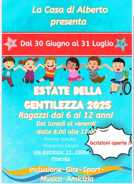 La Casa di Alberto è felice di presentare il progetto “Estate della Gentilezza 2025”, un’esperienza estiva dedicata ai bambini dai 6 ai 12 anni, all’insegna dell’inclusione, della musica, dello sport, delle gite e dell’amicizia! Quando: dal 30 giugno al 31 luglio 2025Orari: dal lunedì al venerdì, dalle 8.00 alle 17.00Dove: Presso l’Istituto Vincenzo Lauro, Via […]