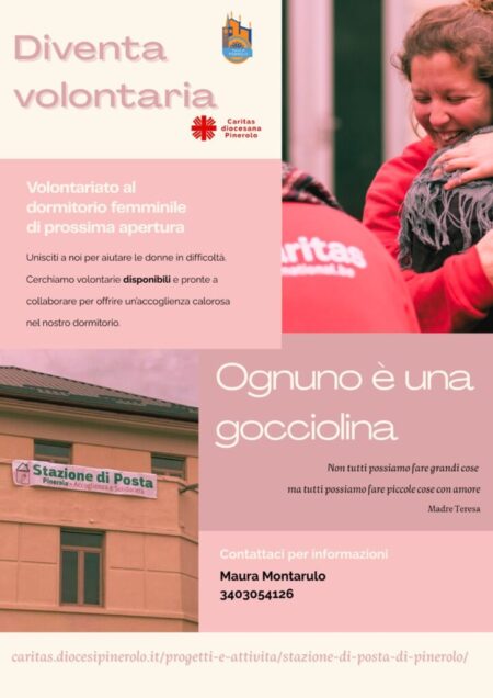 La Caritas Diocesana di Pinerolo cerca volontarie per il nuovo dormitorio femminile, un progetto importante per offrire accoglienza e sostegno alle donne in difficoltà del territorio. Se sei disponibile e desideri fare la differenza con piccoli gesti d’amore, unisciti alla nostra squadra di volontariato. Per informazioni e candidature: Maura Montarulo – Tel. 340.305.41.26 “Non tutti […]